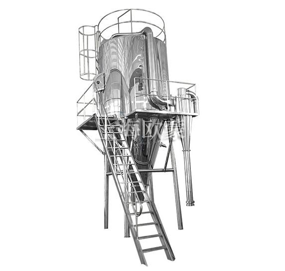 壓力式噴霧干燥制粒機是采用壓力式霧化器借助隔膜泵的壓力將溶液或漿狀的物料粒霧化成細微液滴,使表面積顯著增大,經(jīng)與熱風(fēng)進行充分熱交換得以快速干燥(十幾秒或幾十秒),從而得到粉體或細小粒產(chǎn)品的設(shè)備。