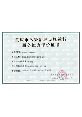 重慶市污染治理設施運行服務能力評價證書