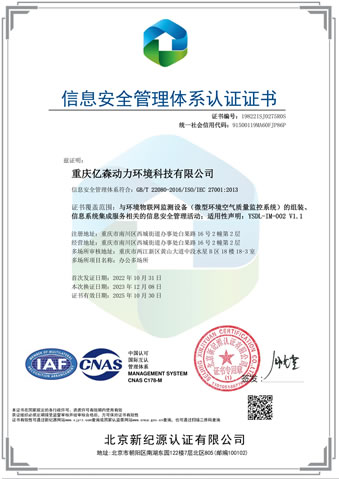 信息安全管理體系認證證書