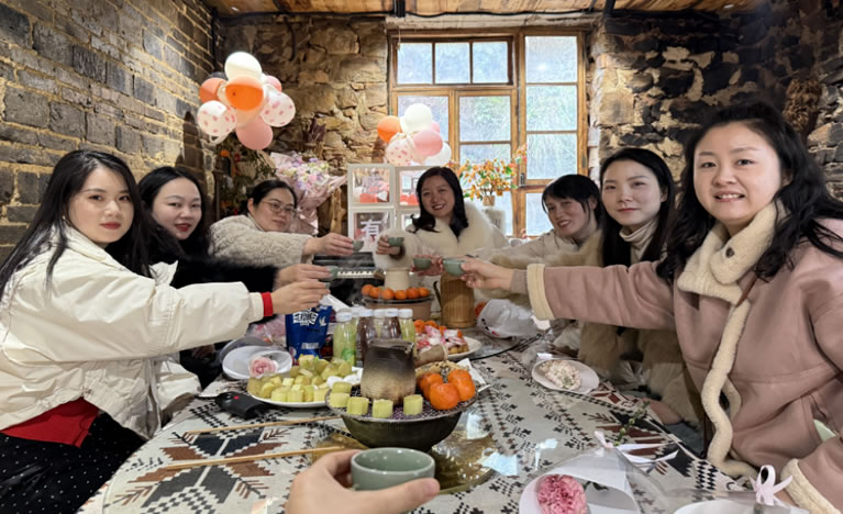 春游之余,公司還安排了圍爐煮茶、烤肉聚餐,大家圍坐在爐邊,平日里忙于工作的她們,此刻終于有機會坐下來,聊聊生活,分享趣事。